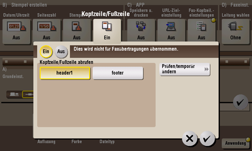 Bei Bedarf können Sie die Details des Programms, das unter [Kopfzeile/Fußzeile abrufen] ausgewählt ist, prüfen oder vorübergehend ändern.