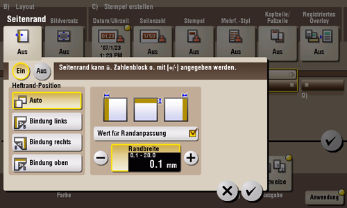 Wählen Sie [Ein], um einen Seitenrand festzulegen.
