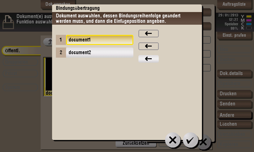 Legen Sie die Sendereihenfolge (Kombination) fest und tippen Sie auf [OK]. Der Optionseinstellungsbildschirm für die Dateiübertragung wird angezeigt.