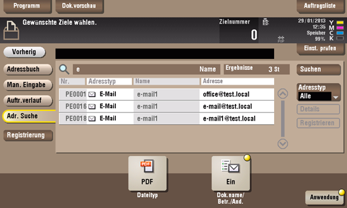 Tippen Sie auf [Suchen], um die Suchergebnisse anzuzeigen. Wählen Sie ein Ziel aus der Liste aus.