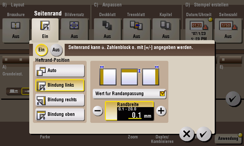 Wählen Sie [Ein], um einen Seitenrand festzulegen.