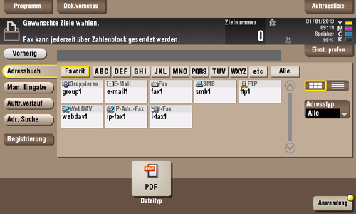 Legen Sie das Ziel und andere Einstellungen für den Versand einer Datei aus der Benutzerbox fest.
