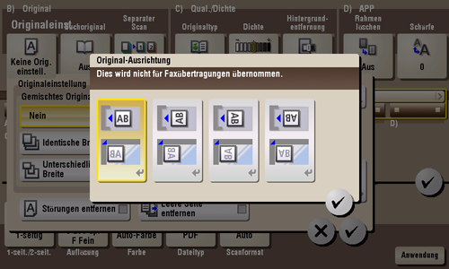 Geben Sie die Ausrichtung des eingelegten Originals an.