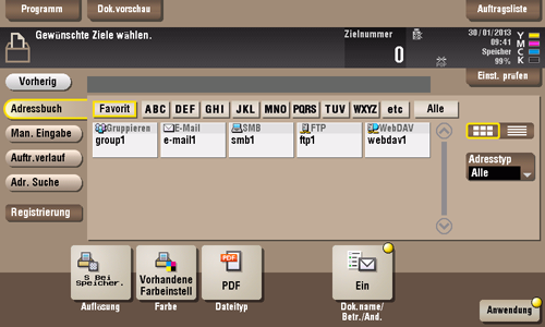 Legen Sie das Ziel und andere Einstellungen für den Versand einer Datei aus der Benutzerbox fest.