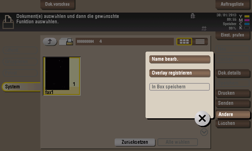 Sie können eine Datei umbenennen oder eine Datei als Overlay-Bild registrieren.