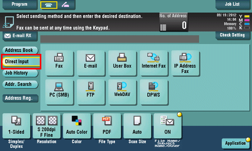 Tap [Direct Input], select the destination type, and then enter a destination.