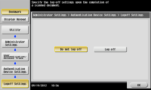 Select whether to automatically log out when original scanning has been completed (default: [Do not log off]).