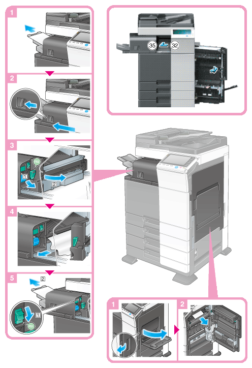 Sections inside the finisher prone to paper jams vary depending on the settings for [Finishing].