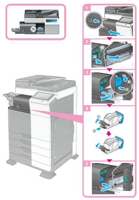 The figure above shows the Finisher FS-533 that is equipped with the Punch Kit PK-519.