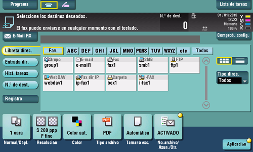 Toque [Comprob. config.] antes del envío y compruebe el destino y la configuración si es necesario.