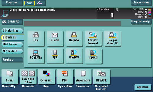 [Tipo dirección] | Se visualiza el tipo de destino seleccionado en la [Entrada dir.]. |