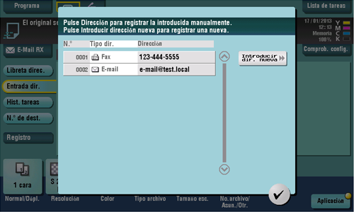 Toque [Introducir dir. nueva] para registrar la nueva dirección que todavía no se ha introducido. Para obtener más información sobre cómo se registra, consulte Aquí.