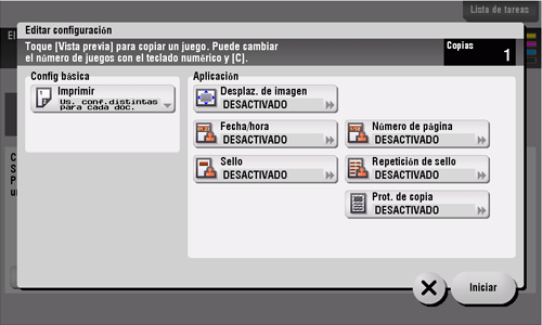 6. Configure los ajustes de copia y, a continuación, pulse Inicio.