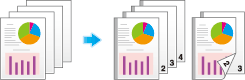 Las páginas de los datos originales se ordenan y se disponen en forma de folleto y se imprimen en ambas caras de las hojas. También puede especificar la posición de encuadernado, o insertar la portada y contraportada.