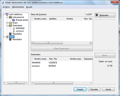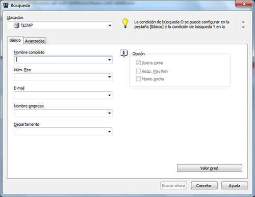 El servidor LDAP debe estar registrado previamente para activar la búsqueda del destinatario del servidor. Para obtener más información sobre cómo registrarlo, consulte Aquí.
