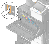 Abra la puerta frontal inferior o la puerta frontal y configure el interruptor de corriente principal en