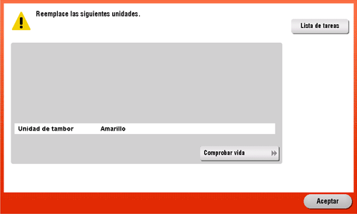 (Se requieren los ajustes del servicio de asistencia técnica para mostrar un mensaje sobre la unidad de tambor o la unidad de revelado. Para obtener más información, póngase en contacto con el servicio de asistencia técnica.)