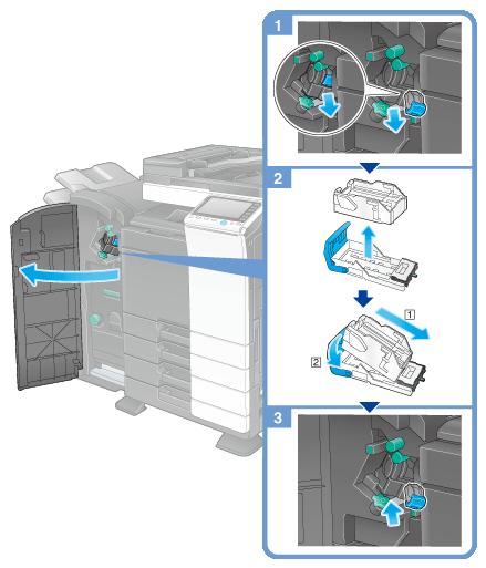 Asegúrese de reemplazar el cartucho de grapas después de que aparezca el mensaje correspondiente. Si el cartucho de grapas se retira antes de que aparezca el mensaje, se producirá un error.