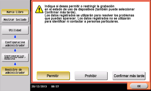 Seleccione si desea permitirnos adquirir datos de registro relativos al uso de la máquina.