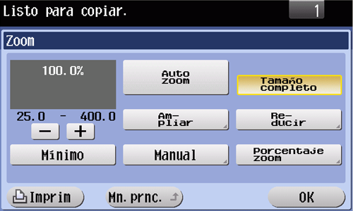 [Tamaño completo] | Toque este botón para copiar una imagen original con el mismo tamaño que para el original (x1.0). |