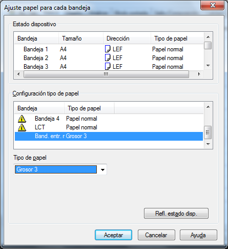 Compruebe que la bandeja de papel y la configuración del tipo de papel hayan cambiado automáticamente y, a continuación, haga clic en [Sí].