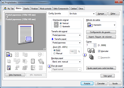 En [Tamaño del original] en la ficha [Básico], seleccione [Sobre] o [Tarjeta postal].