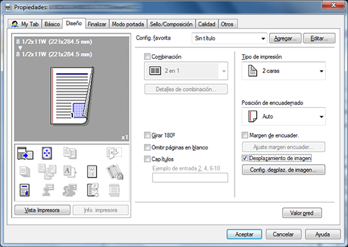 Para activar el desplazamiento de imagen, seleccione la casilla de verificación [Desplazamiento de imagen] en la ficha [Diseño] y haga clic en [Config. desplaz. de imagen...].