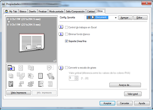 La configuración de escala de grises se aplica siempre que se utilice la impresora en cualquier aplicación de software.