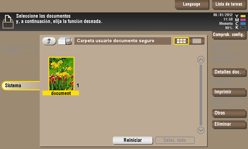 El documento de impresión segura se imprime y elimina de la carpeta de usuario de impresión segura de forma automática.