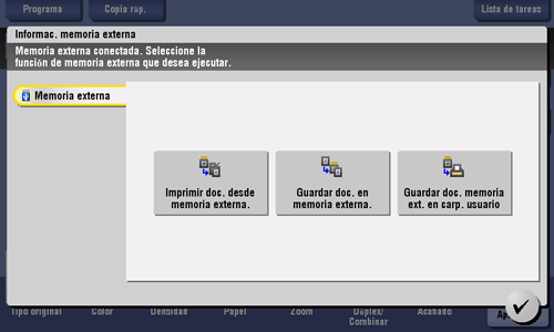 El estado de autenticación puede ser [ACT. (MFP)], [ACT. (Servidor externo)], [ACT. (MFP) + ACT. (Servidor externo)], [ACT (Serv. optimizado)] o [ACT. (MFP) + ACT (Serv. optimizado)]. Si desea conocer más detalles, póngase en contacto con el administrador del equipo.