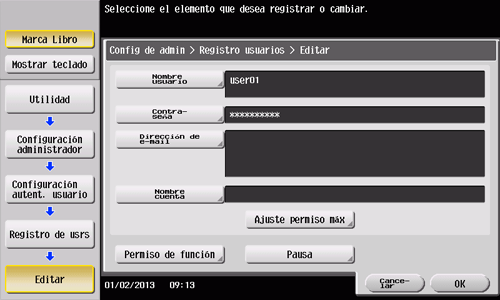 Seleccione [Configuración autent. usuario] - [Registro de usrs].