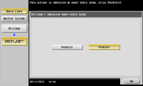 Toque [Utilidad] y seleccione [Impres. Papel Extra Largo].