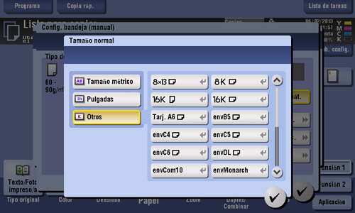 Seleccione una de las opciones de tipo de papel y, a continuación, toque [Tamaño pers.].