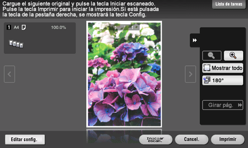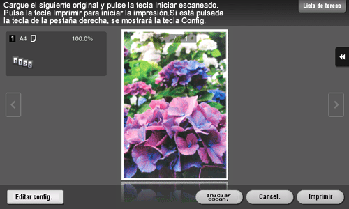Una vez finalizado el escaneado de las páginas del original, configure el siguiente lote de originales en el alimentador automático de documentos y, a continuación, pulse Inicio.
