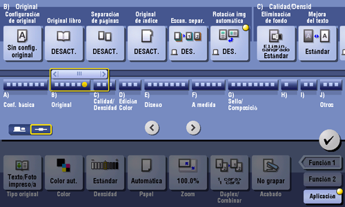 Toque [Aplicación] y, a continuación, seleccione [Configuración de original].