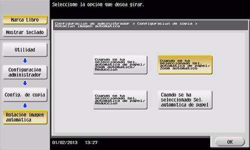 Seleccione [Config. de copia] - [Rotación imagen automática].