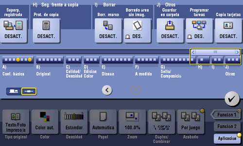 [Otros] | [Número de tarea] | Seleccione Sí para imprimir el número de tarea correspondiente a la copia. |