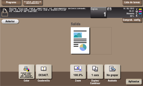 Es posible modificar los ajustes para [Color], [Zoom], [Dúplex/Combinar] y [Acabado].