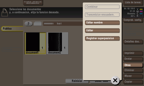 Para imprimir, toque [Otros] y, a continuación [Combinar]. Para enviar, toque [Otros] y, a continuación, [Transmisión encuadern.].
