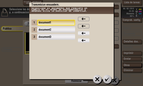 Cambie el orden de los archivos para imprimir o enviar según sea necesario y, a continuación, toque [Aceptar].