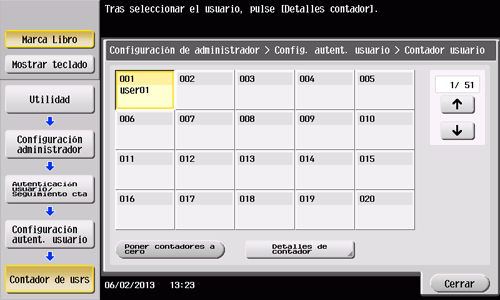 Seleccione un usuario sujeto a la comprobación de contadores y, a continuación, toque [Detalles de contador].