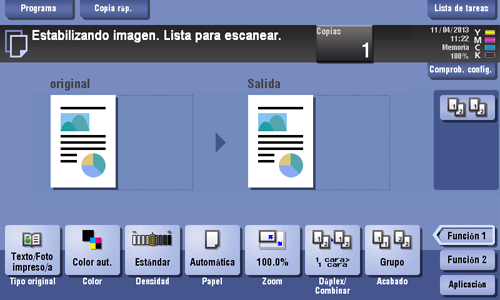 La estabilización de imagen se realiza cuando se imprime un gran número de copias o cuando se producen cambios de temperatura o humedad dentro de la máquina.