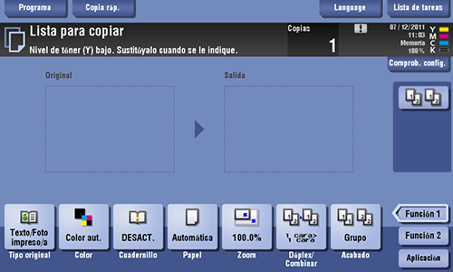 Cuando se está acabando el tóner en el cartucho de tóner, aparece un mensaje como el que se muestra a continuación (si lo sustituye el usuario).