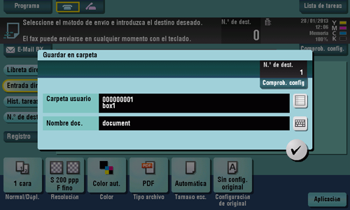 Seleccione una carpeta de usuario para guardar datos de originales escaneados en la carpeta de usuario de esta máquina. Si es necesario, cambie el nombre del archivo para guardarlo.