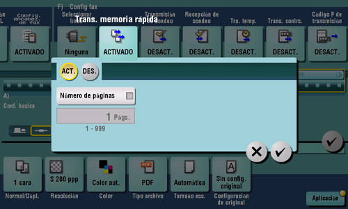 [ACT.]/[DES.] | Seleccione [ACT.] para especificar Trans. memoria rápida |