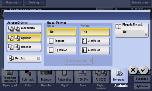 [Perforar] | Seleccione la posición de encuadernado al perforar hojas. Para obtener más información, consulte Aquí. |