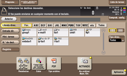 Seleccione un destino de la libreta de direcciones. Es posible retransmitir archivos seleccionando varios destinos.
