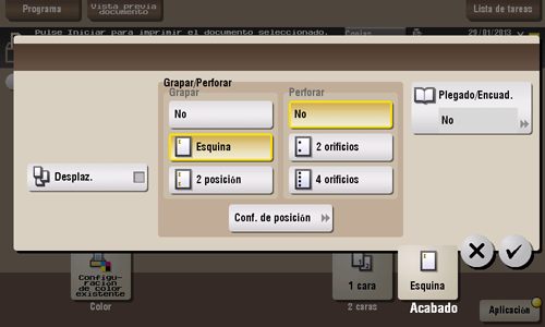 [Perforar] | Seleccione la posición de encuadernado al perforar hojas. Para obtener más información, consulte Aquí. |