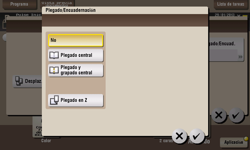 Para utilizar la función Plegado central/Encuadernación: