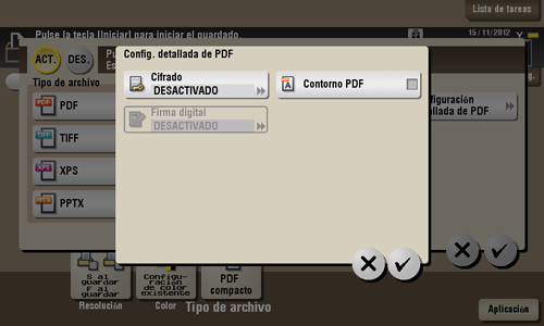 Si el tipo de archivo se ha ajustado a [PDF] o [PDF compacto], se pueden ajustar las opciones de PDF.
